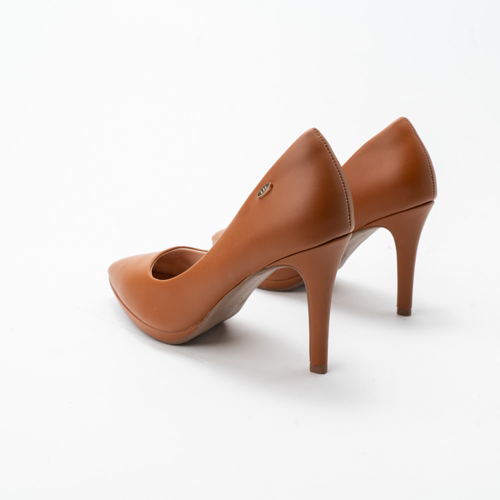 Imagine a pair of stilettos in a refined matte camel/tan hue. These shoes have sleek lines, a pointed toe and slender silhouette that will effortlessly enhance any outfit. These shoes radiate timeless elegance and boast exceptional craftsmanship. With their pointed toe and stiletto heel, they infuse a hint of glamour into every outfit. The matte finish adds a chic allure, ensuring versatility to complement various looks. These stilettos embody sophistication and style.
